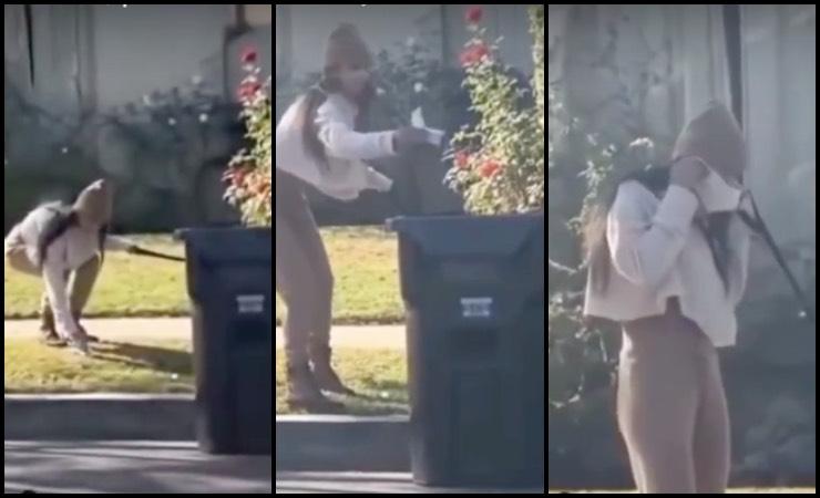 La donna nel video infatti si mostra intenta a raccogliere i bisogni dell’amico a quattro zampe, per farlo però utilizza la mascherina che precedentemente aveva sul volto.