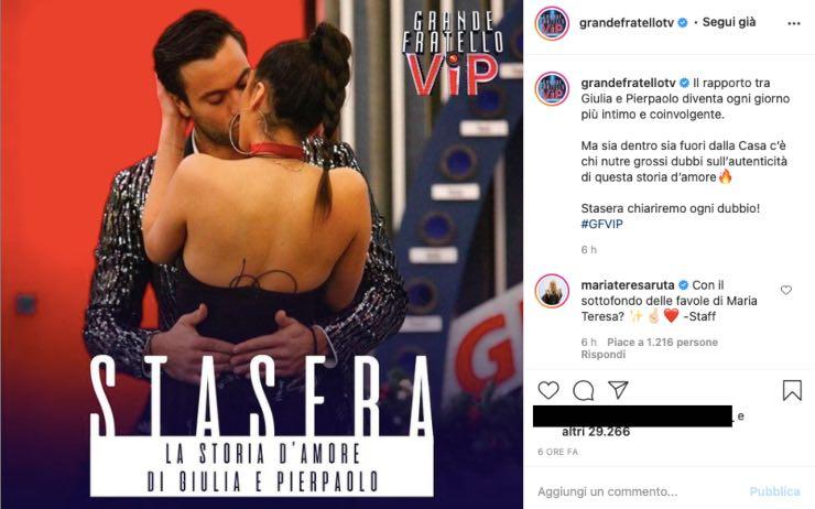 Dopo l’uscita dalla casa più spiata d’Italia di Elisabetta Gregoraci, Pierpaolo, come noto, è entrato molo in confidenza con Giulia. I due hanno dato vita ad una love story e sembrano sempre più intimi e vicini, mentre intorno a loro non mancano i dubbi e le discussioni.