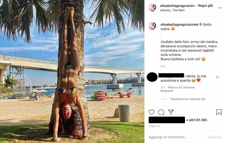 Un piccolo incidente per Elisabetta Gregoraci, che tratta però l’argomento con la simpatia e con l’autoironia, due doti che tutti coloro che la seguono da tempo, tanto al GF VIP quanto rispetto al racconto della vita di tutti giorni su Instagram le attribuiscono.