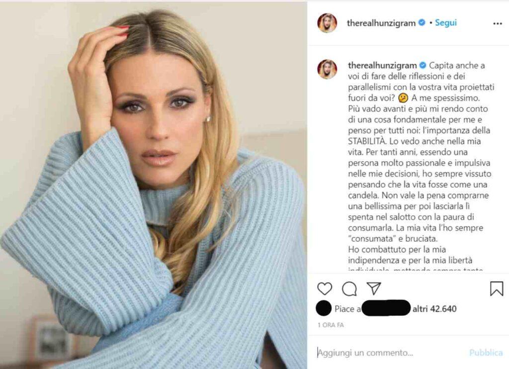 Oggi la Hunziker ha espresso una sua riflessione molto interessante sul periodo che stiamo vivendo e sull’importanza di un concetto alle volte sottovalutato: la stabilità.
