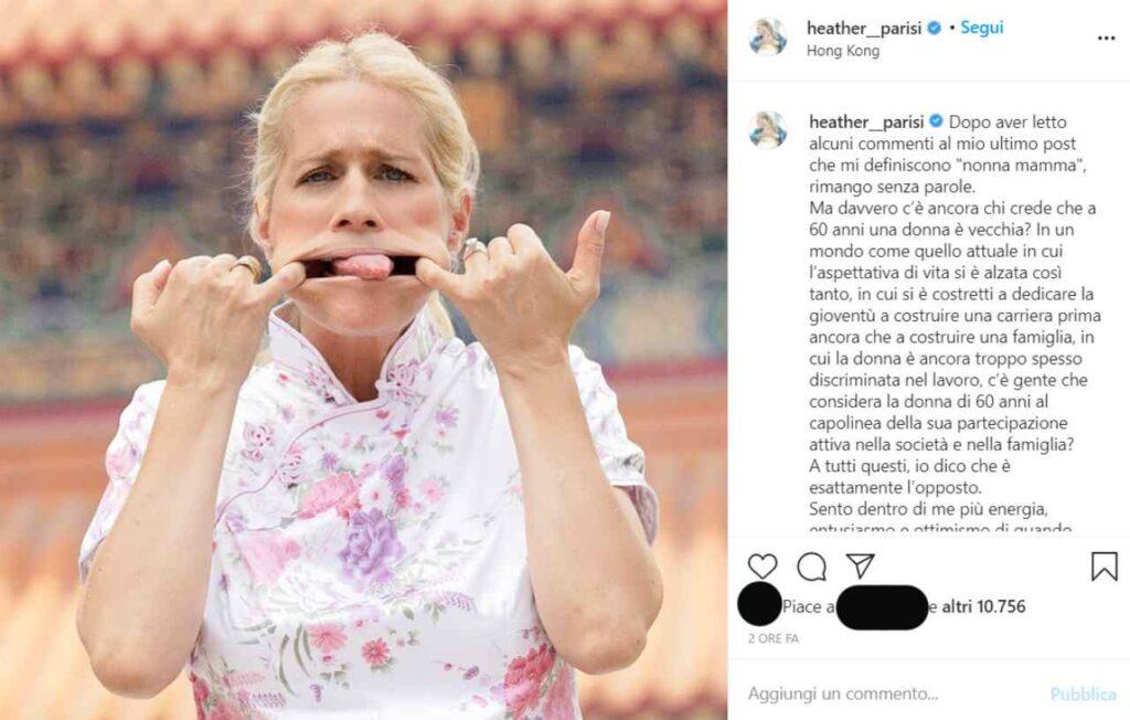 Heather Parisi, lo sfogo su Instagram: “Ma davvero c’è ancora chi crede che a 60 anni una donna è vecchia?”
