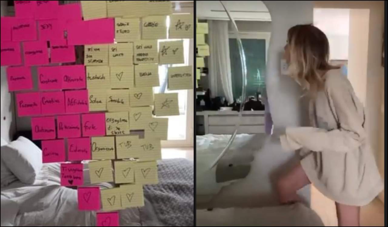 La sorpresa organizzata dalla piccola Mia è stata fatta a mano ed’è davvero deliziosa, la bambina ha infatti creato un cuore con dei post bicolori attaccati allo specchio della camera da letto della talentuosa conduttrice.