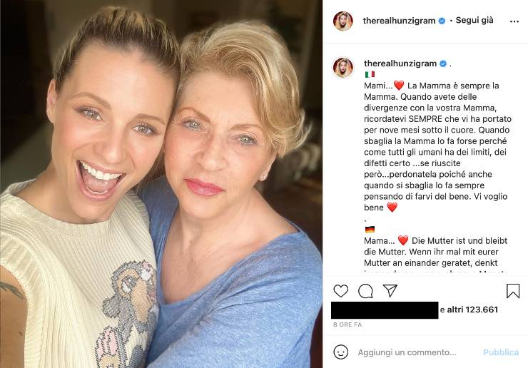 Ed in seguito rivolge un appello: “se riuscite però… perdonatela poiché anche quando si sbaglia lo fa sempre pensando di farvi del bene“. La Hunziker, com’è noto e come si può vedere anche dalla sua pagina social, ha uno splendido rapporto con sua madre ed è probabilmente proprio in virtù di questo che le sue parole sono così dolci.