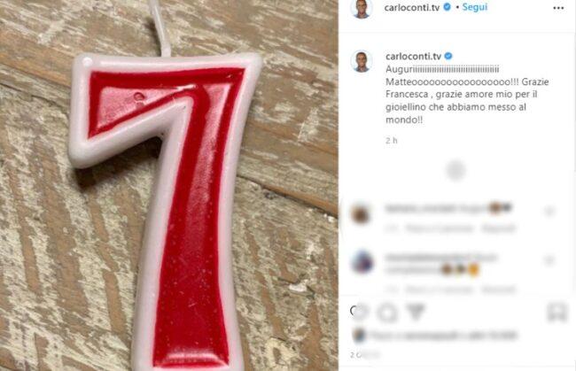 “Auguriiiiiiiiiiiiiiiiiiiiiiiiiiiiiiiiiiii Matteooooooooooooooooo!!! Grazie Francesca, grazie amore mio per il gioiellino che abbiamo messo al mondo!!” sono queste le poche parole che inserisce come didascalia della foto in cui compare proprio un numero sette a forma di candelina, che riesce in poco tempo a fare il giro del web.