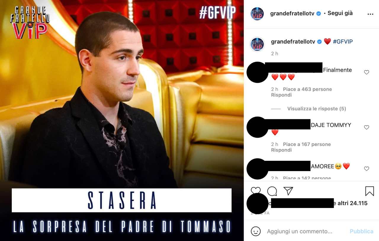 Qualche ora fa, sulla pagina Instagram del ‘Grande Fratello Vip‘ è apparso uno scatto che ritrae proprio Zorzi e in sovrimpressione una scritta che rivela che questa sera il noto influencer incontrerà suo padre.