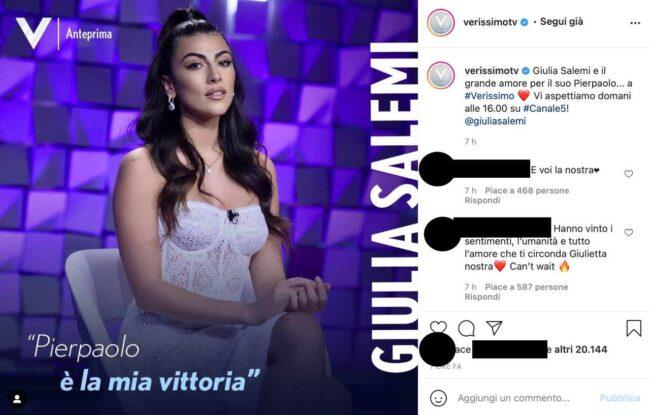 Giulia Salemi negli studi Verissimo: l’ex gieffina si racconta da Silvia Toffanin