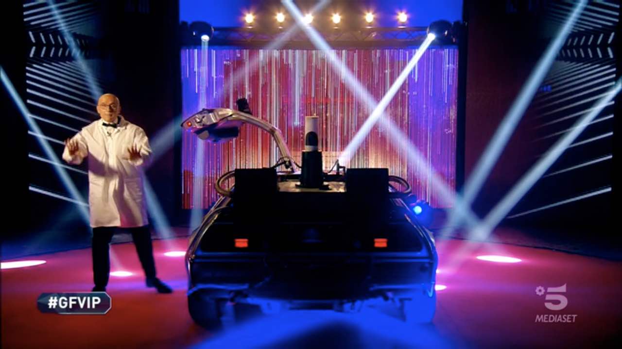 Finale GF VIP, Alfonso Signorini ritorno al futuro: a bordo della DeLorean