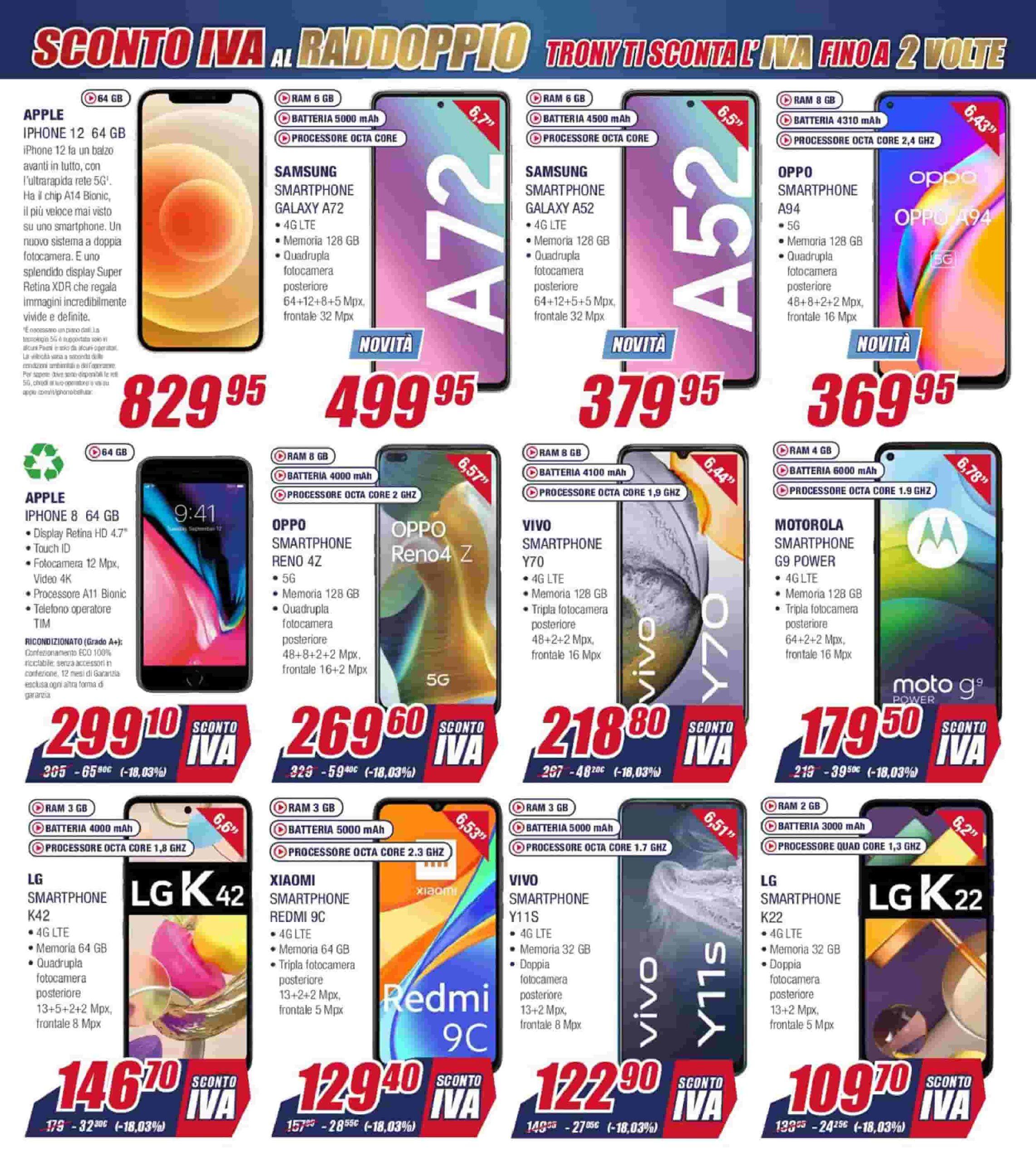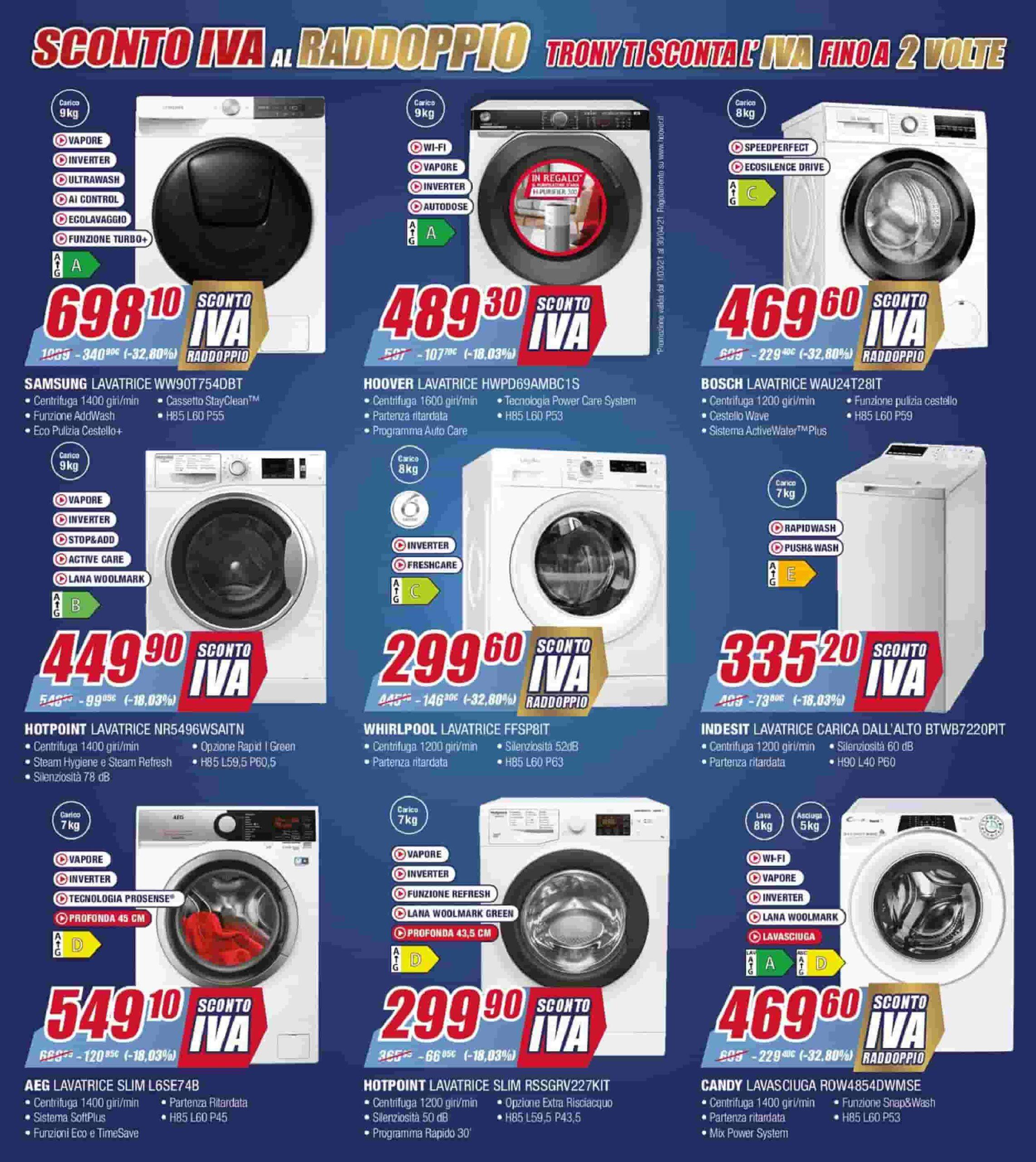Si chiama “Sconto IVA al raddoppio” e punta su sconti che vanno dal 18 ad oltre il 30%. Eccezionale davvero il prezzo della lavatrice LG F4J3TN3WE che viene venduta a 349,30, invece che al prezzo di listino di 519 euro. Promo anche sugli smartphone. In particolare l’iPhone 8 da 64 GB è venduto a soli 299,10 euro.