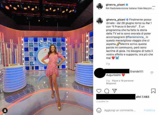 L’ultimo post pubblicato dalla Pisani risale a qualche giorno fa e, per la felicità dei suoi seguaci, la ragazza ha annunciato che è nel cast di ‘Il pranzo è servito‘, trasmissione condotta da Flavio Insinna.