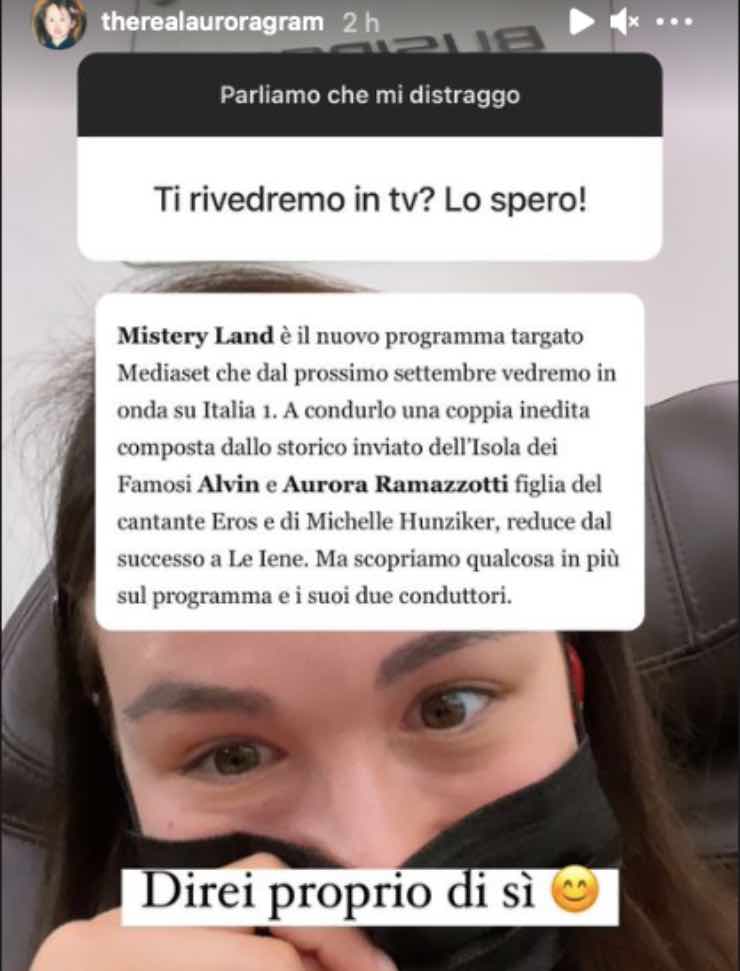 Nella fattispecie, l’utente le chiede se “ti rivedremo presto in tv? Lo spero”. Una domanda a cui prontamente replica la Ramazzotti che mostra un’anticipazione relativa al nuovo programma che andrà a condurre, Mistery Land.