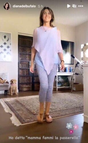 Nella storia in questione, postata in basso, la donna si mostra con indosso un meraviglioso completo con colori molto chiari e ad accompagnare il tutto una divertente didascalia della Del Bufalo che recita: “Ho detto “mamma fammi una passerella”“.