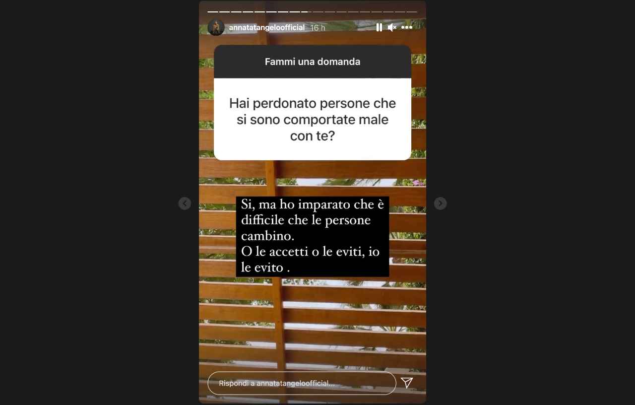 Proprio nelle ultime ore, nelle sue Instagram Story, Anna Tatangelo ha invitato i suoi follower a fargli delle domande. Tra queste, un utente gli ha chiesto se ha mai perdonato chi si è comportato male con lei.
