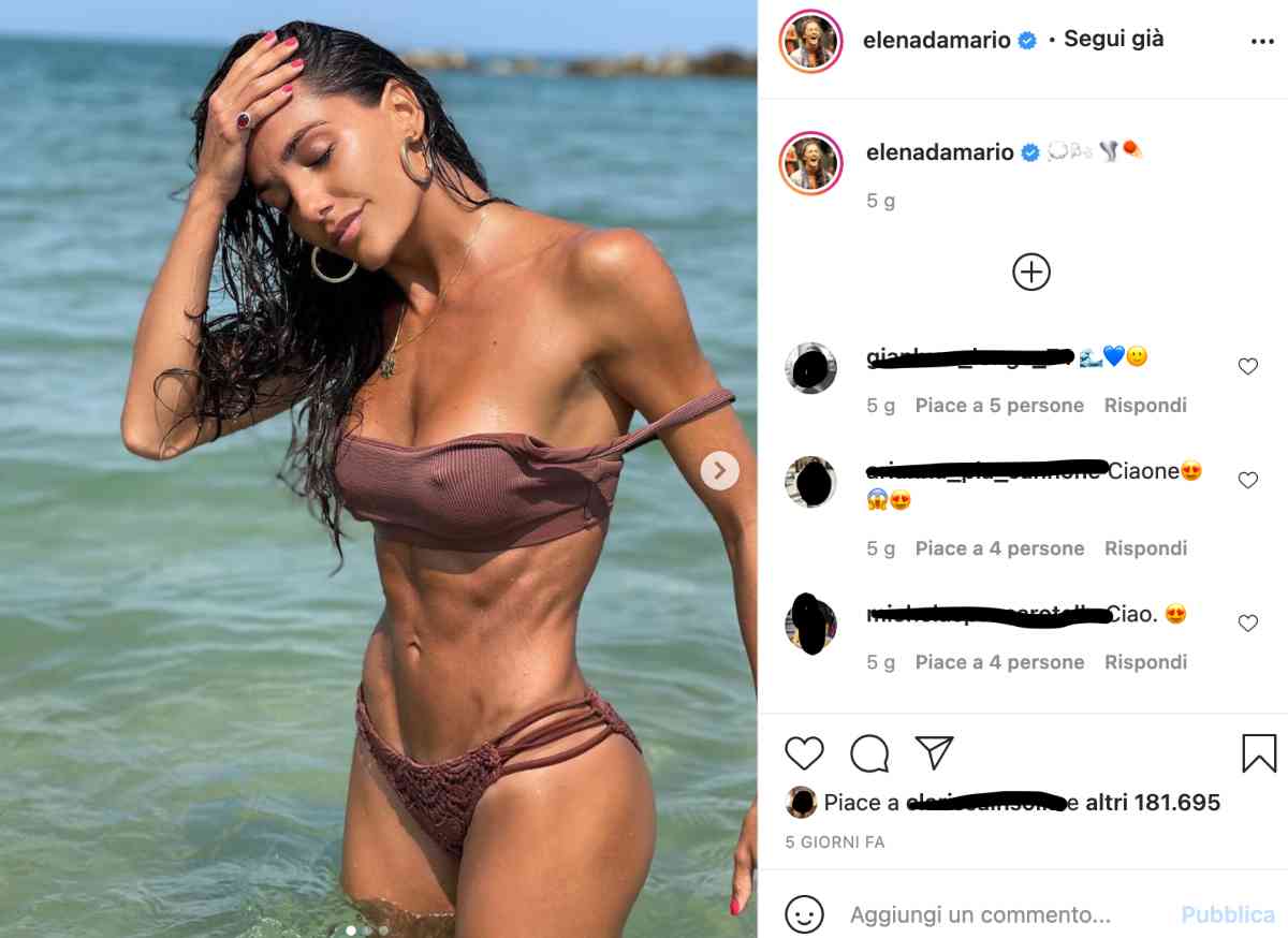 Come spesso capita in queste circostanze, sono tantissimi i commenti di persone che si complimentano per la sua forma. “La donna più bella del mondo”, scrive un fan. Mentre un altro sottolinea la sua perfezione. “Ladies and gentlemen la dea d’Abruzzo”, scrive un’altra follower marcando il fatto che Elena è di Pescara.
