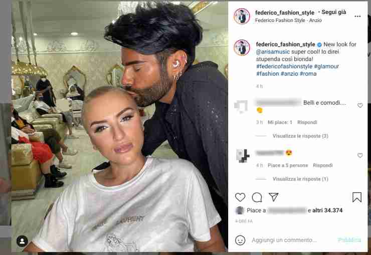 Il parrucchiere e stilista del capello ha pubblicato la foto del risultato su Instagram, visibilmente soddisfatto del proprio lavoro. «Io direi stupenda così bionda!», si legge come didascalia della foto, che ha già fatto il pieno di like, oltre 25mila. Federico e Arisa sono una coppia esplosiva, sia nel salone che fuori. E non è impensabile che faranno coppia per altre eccentriche acconciature in futuro.