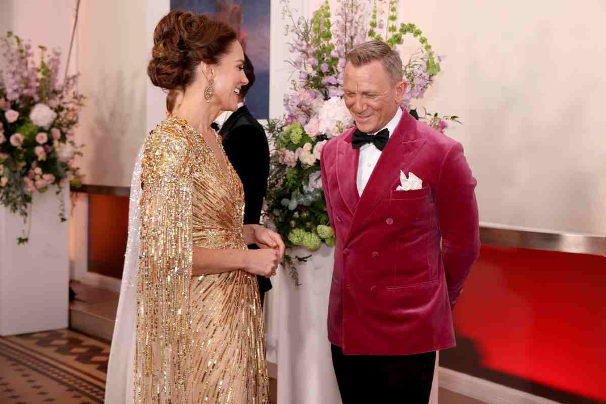 Una piccola curiosità è che l’erede al trono aveva già conosciuto Craig durante le riprese del film, ai Pinewood Studios, nel 2019. Come l’attore aveva già conosciuto la Regina, ieri assente, durante la produzione di uno spot che promuoveva le Olimpiadi di Londra. Ma ieri, un’altra protagonista è stata Kate Middleton con il suo fantastico abito indossato durante la premiere.