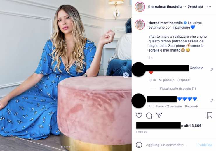 In questa occasione, lo scatto riceve l’affetto del pubblico, mentre Martina condivide anche un pensiero proprio inerente alla gravidanza.