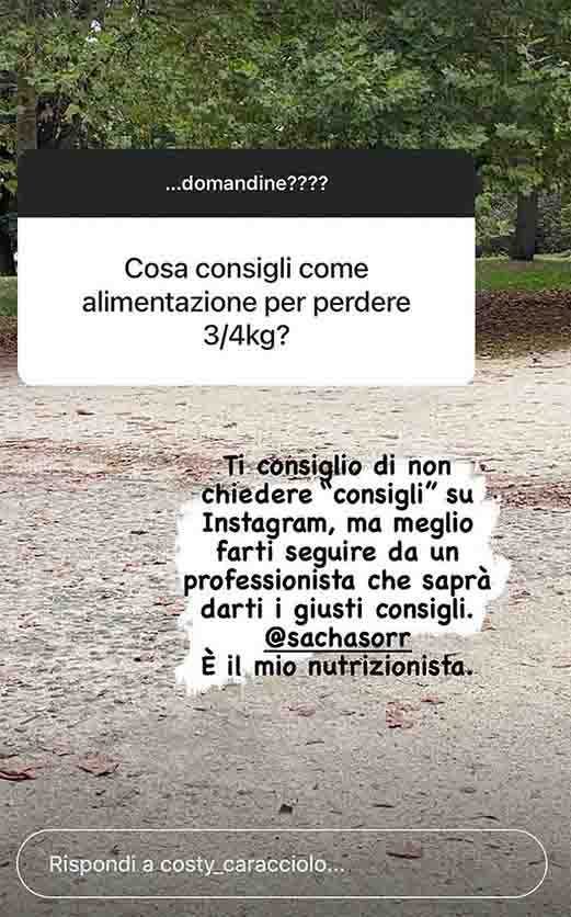 Le donne la apprezzano, la amano, le chiedono consigli, si fidano di lei. In una storia recente, pubblicata sul profilo instagram di Costanza, si evidenzia come il pubblico femminile sia curioso di conoscere i segreti della bella Caracciolo. Una donna in particolare, una sua affezionata followers, le domanda i particolari della sua dieta.