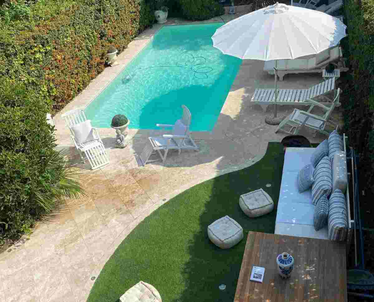 Per quanto riguarda il giardino, questo è immenso. Al centro c’è una grande piscina contornata di verde. Dalle immagini possiamo notare che ci sono lettini per prendere il sole e ombrelloni per pararsi dal caldo.