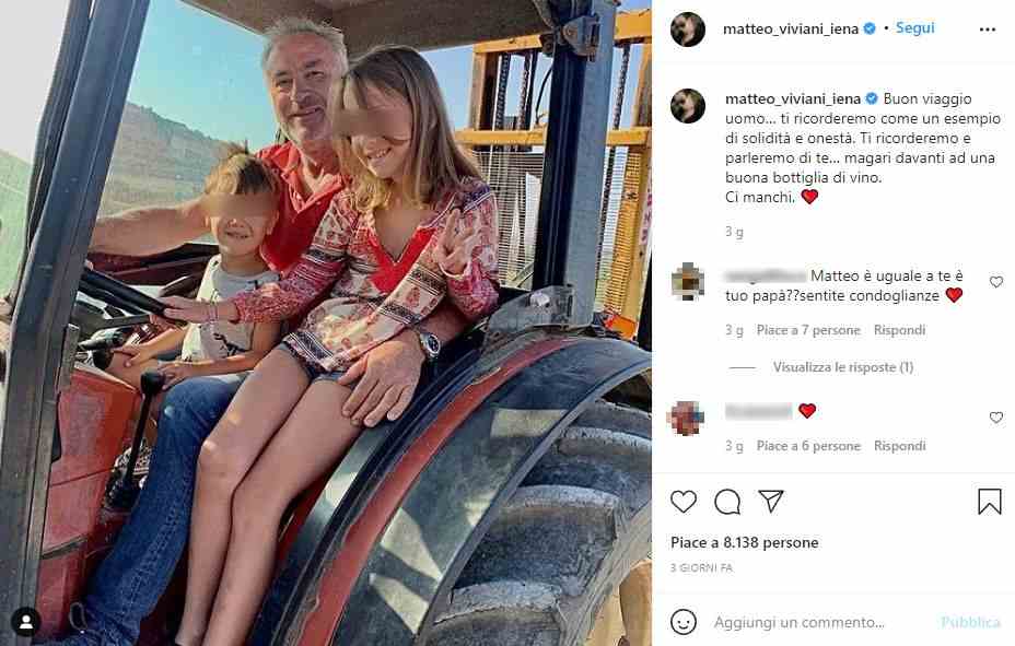 Il post affidato ad Instagram di Matteo Viviani fa capire l’importanza delle giornate passate nel regno di Riccardo Baracchi. Lui non era solo un imprenditore ma produceva anche del vino che dispensava a tutti gli ospiti. Nel saluto di Matteo Viviani c’è anche il tag verso sua figlia che è stata colpita da questa tremenda tragedia.