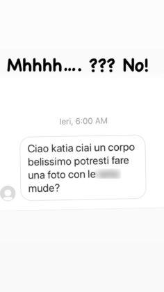 Per quanto gli apprezzamenti possono far piacere, qui si è superato decisamente il limite. Non sappiamo le contromisure che adotterà Katia Follesa ma siamo certi che farà in modo di non ricevere questi messaggi, francamente, inaccettabili.