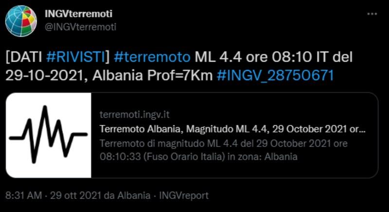 Il terremoto che ha colpito l’Albania è stato molto forte. Questo è arrivato alle 6:10 locali, 8:10 italiane. Segnata dall’Istituto Nazionale di Geofisica e Vulcanologia, localizzato dalla Sala Sismica INGV-Roma. Una forte scossa che ha creato momenti di forte apprensione per i cittadini.