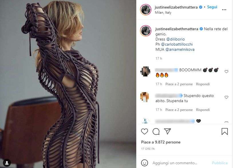 Nell’ultima foto, la si vede di profilo in un vestito che lascia intravedere le sue eccezionali curve. Uno scatto artistico che dimostra tutta la bellezza della Mattera. Naturalmente questo, come molti altri contenuti, ha riscosso tanti apprezzamenti tra like e commenti. La didascalia, infine, è un chiaro riferimento al vestito e fa: “Nella rete del genio”.