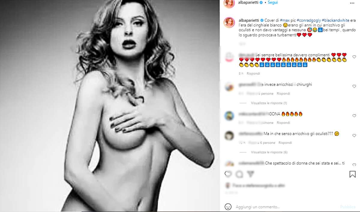 La showgirl ha deciso di animare e rinvigorire i followers del suo profilo Instagram pubblicando una foto abbastanza piccante. Lo scatto hot in bianco e nero è stato rispolverato dal passato. Risale infatti a diversi anni fa, quando Alba era più giovane e aveva posato per il magazine “Max”.