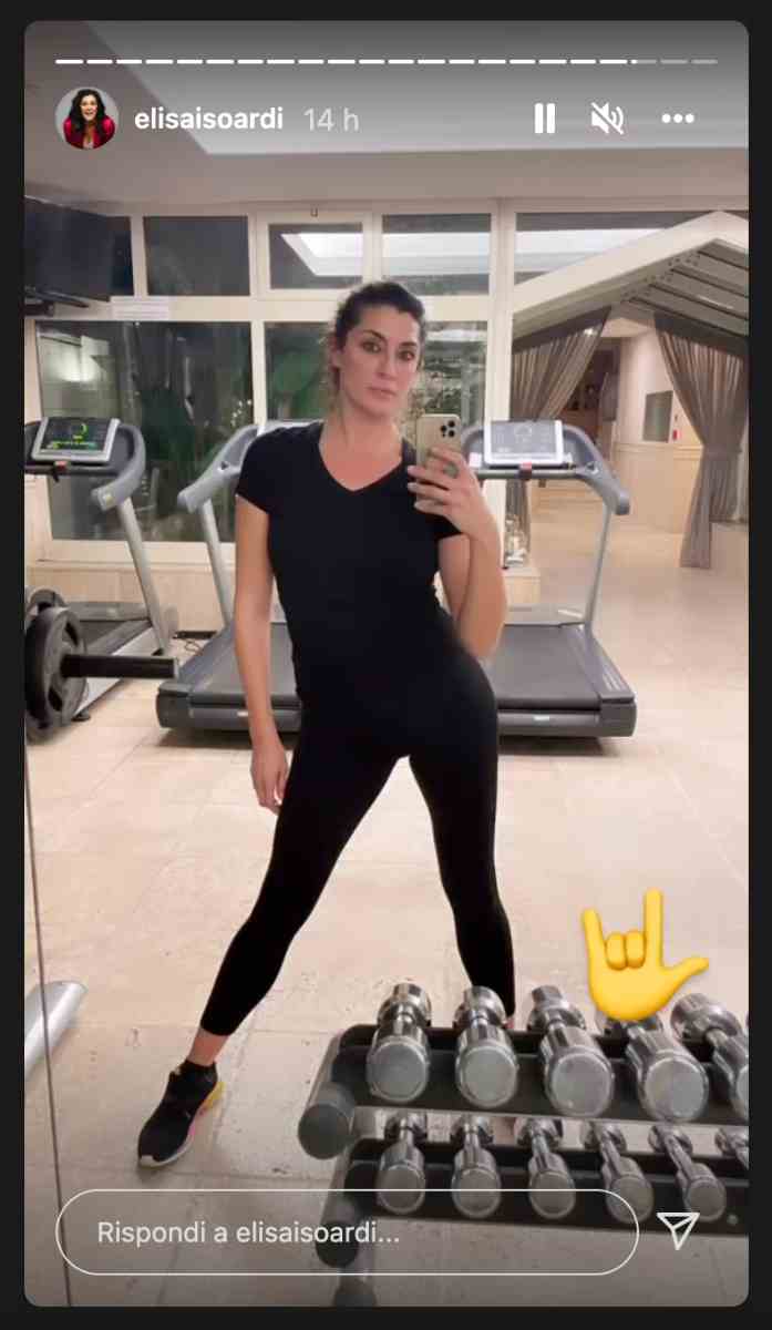 Maglietta a maniche corte nera e leggings neri, così si palesa ai suoi follower, con un corpo perfetto, frutto di tanto allentamento. Infatti Elisa pubblica spesso storie in cui è in palestra ad allenarsi. Proprio questo è il segreto del suo successo, insieme ad una buona e sana alimentazione.