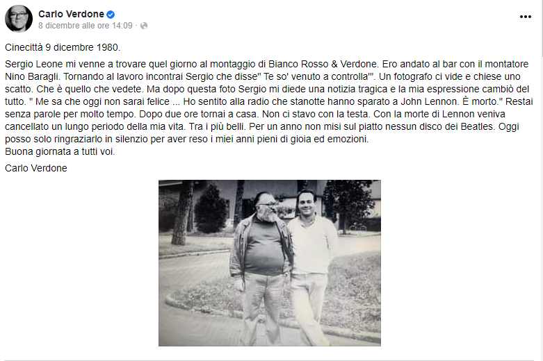 Infatti, il giorno prima Mark David Chapman colpì con 4 colpi, al Dakota Building di New York, John Lennon. Una notizia che fece preso il giro del mondo e sconvolse milioni di persone. Tra queste, c’era Carlo Verdone. L’attore romano subito avvisò il contraccolpo psicologico. Lui stesso ha ammesso che quell’evento gli ha portato via un periodo della sua vita. Addirittura, non riuscì a mettere per un anno nessun disco dei Beatles.