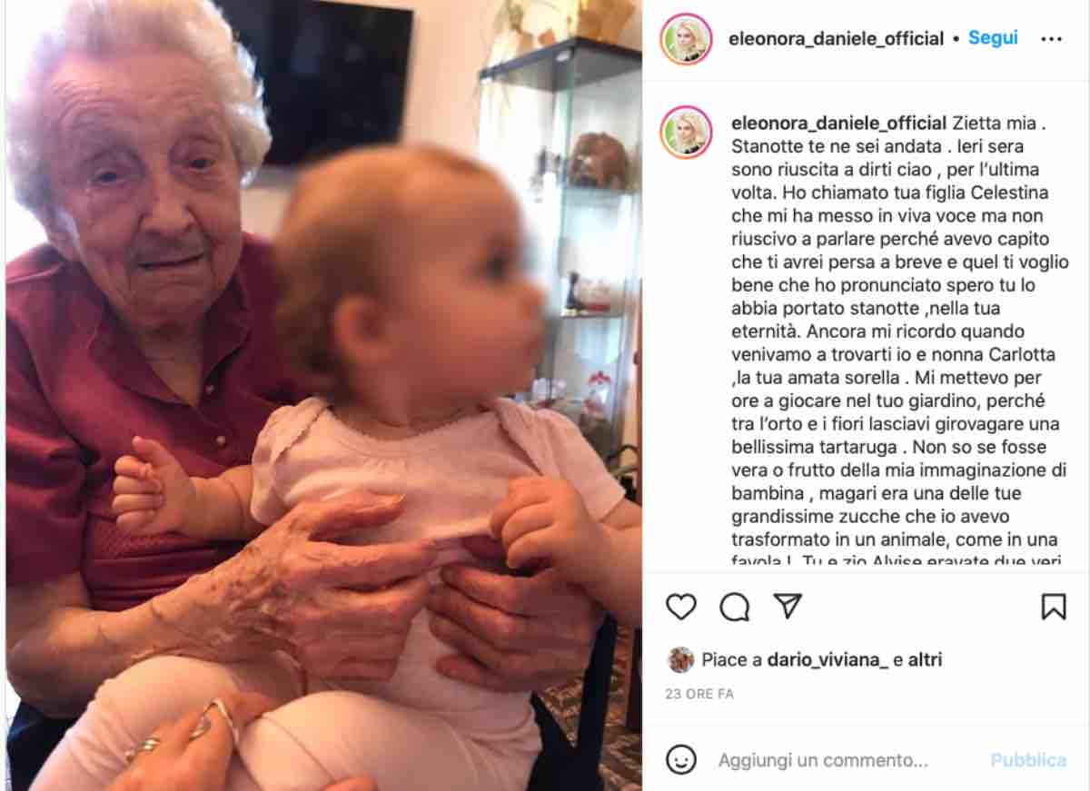Eleonora Daniele, morta la zia: “Ti ho detto ‘ciao’ per l’ultima volta”