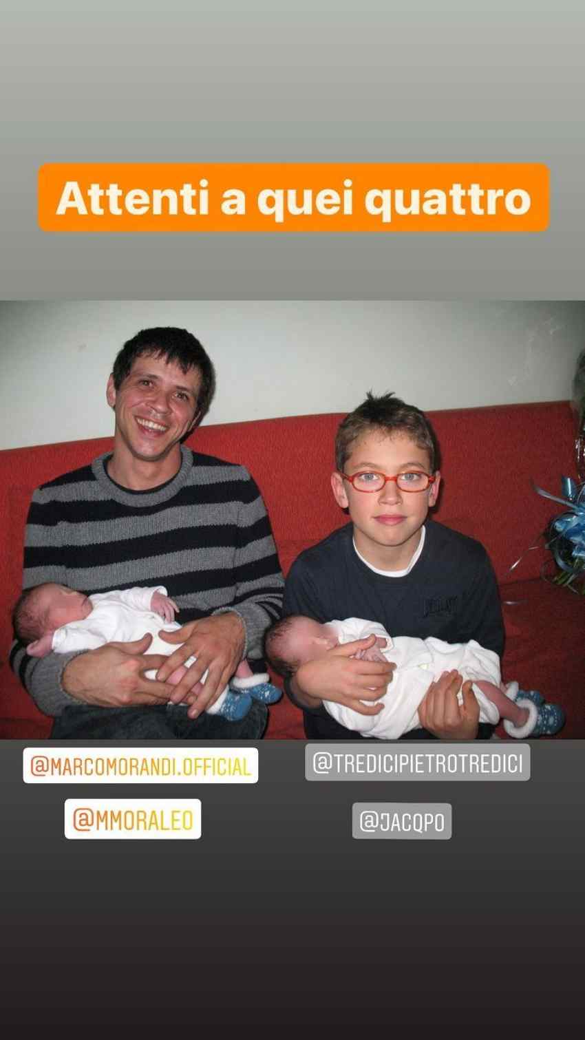 Lo scatto mostrato tramite storia Instagram, non c’è solo il giovane rapper. Con lui ci sono gli altri 3 ragazzi, due neonati e Marco Morandi. Una foto che i più curiosi hanno sicuramente apprezzato. Inoltre, lo scatto dimostra l’unione e la felicità dei due ragazzi.