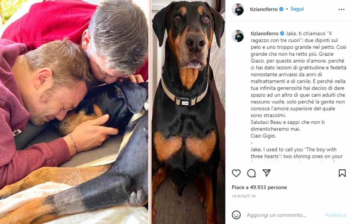 Tiziano Ferro, addio a Jake: il messaggio straziante