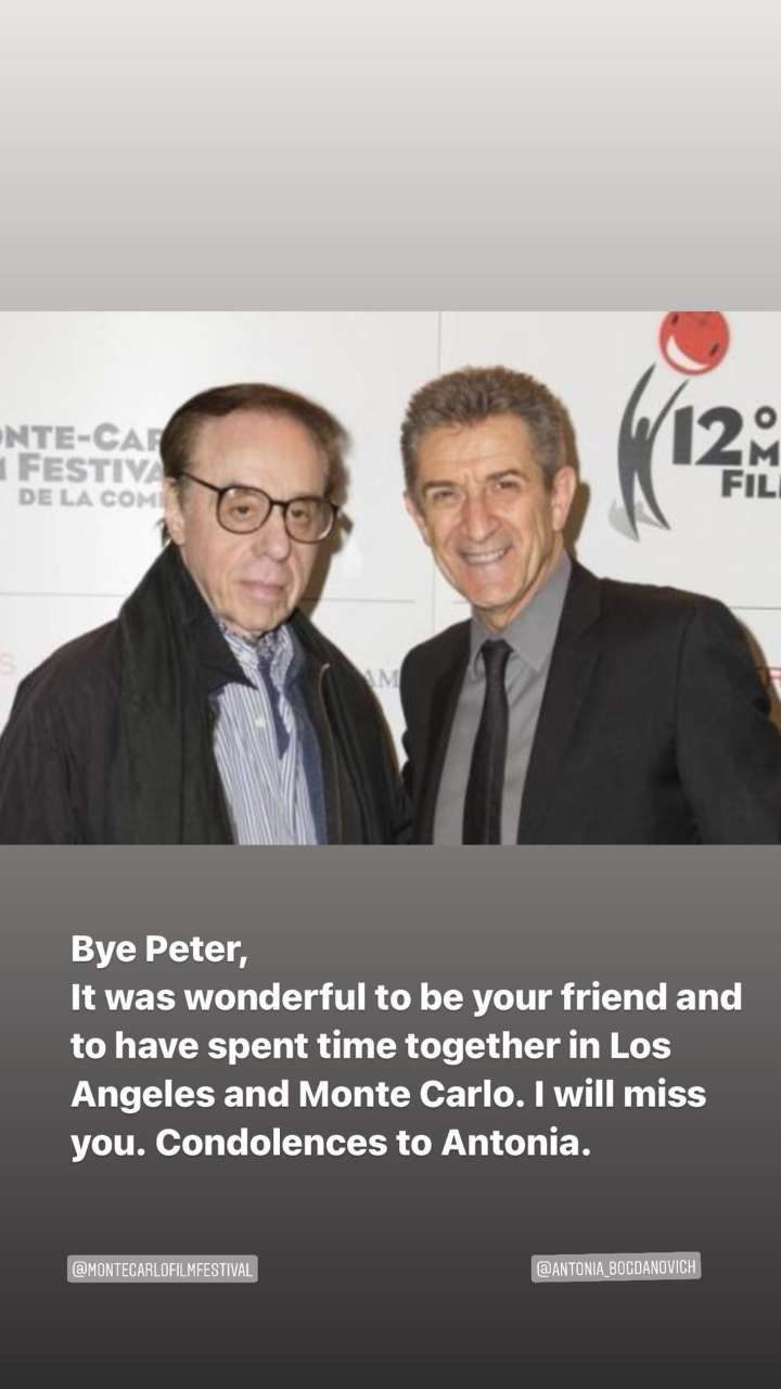 Per questo motivo, il suo messaggio di addio è stato davvero sentito. Nel primo ha repostato una storia di montecarlofilmfestival in cui era presente il regista con anche Giancarlo Giannini. La seconda storia, invece, la foto ritrae lui con il regista e sotto un messaggio molto significativo. Il conduttore sottolinea come sia stato fantastico aver passato del tempo con lui a Los Angeles e a Montecarlo. In ultima battuta, da le condoglianze ad Antonia.