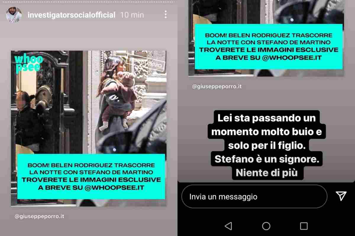“Lei sta passando un momento molto buio, Stefano è un signore lo fa per il figlio” sono queste le parole che Alessandro Rosica scrive nella storia Instagram in cui viene riportato che l’argentina ha passato la notte in casa del napoletano, uno scoop che confermerebbe il gossip che li rivuole vicini.
