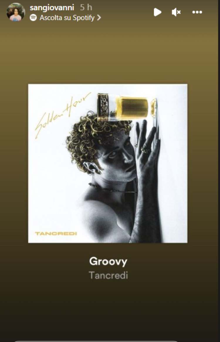 Sangiovanni ha voluto commentare con una storia molto affettuosa il brano “Groovy” di Tancredi, che ha già raggiunto un buon successo. Il cantante si ricorda di quando l’amico gliene parlava mentre erano ancora nella scuola di Amici: “Ricordo quando mi raccontavi di questo pezzo…vedevo nei tuoi occhi che eri orgoglioso della tua pazza idea” ha scritto sui social. Un gesto molto affettuoso quello di Sangiovanni che augura a Tancredi tutto il successo possibile: “La musica tu te la godi come un bambino…stammi bene sempre”.