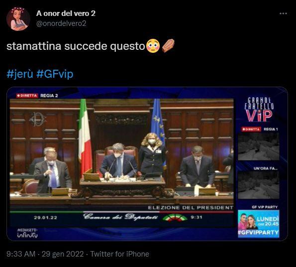 Proprio sui social, nella fattispecie Twitter, è stato segnalato uno stranissimo bug. Un errore di trasmissione che non ha portato a vedere i concorrenti nella casa del GF Vip ma altro. Stiamo parlando della diretta in Parlamento per l’elezione del nuovo Presidente della Repubblica. Cosa già capitata nella giornata di ieri. I commenti all’accaduto sono stati tanti e tutti molto divertenti.