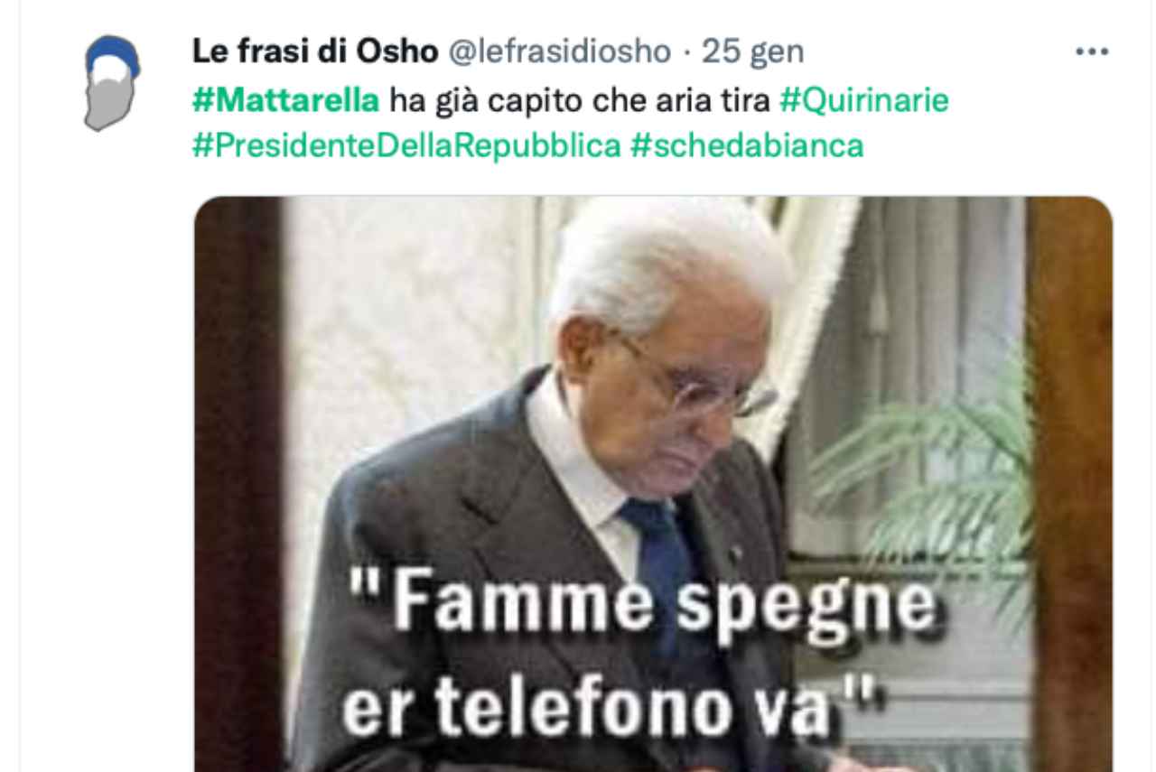 Da come possiamo vedere, la situazione è molto instabile. Nel corso della settimana sono usciti tanti nomi ma nessuno è riuscito a convincere le parti in causa. Per questo motivo, nonostante il no ad un secondo mandato, le parti politiche stanno lavorando per un Sergio Mattarella bis. Proprio dal no iniziale, queste notizie hanno fatto scatenare il web. Molti utenti hanno realizzato dei meme davvero molto divertenti che hanno strappato tanti consensi. Andiamo a vedere cosa il web ha creato per questa situazione politica.