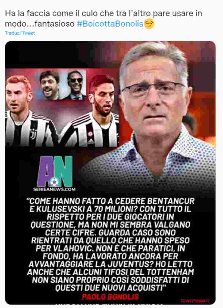 Le parole di Bonolis hanno urtato la sensibilità di diversi “gobbi” che su Twitter hanno lanciato l’hashtag #boicottabonolis, ora in tendenza. Pare che i tifosi juventini stiano tentando di convincere gli utenti sul web a boicottare i programmi di Paolo in segno di protesta.