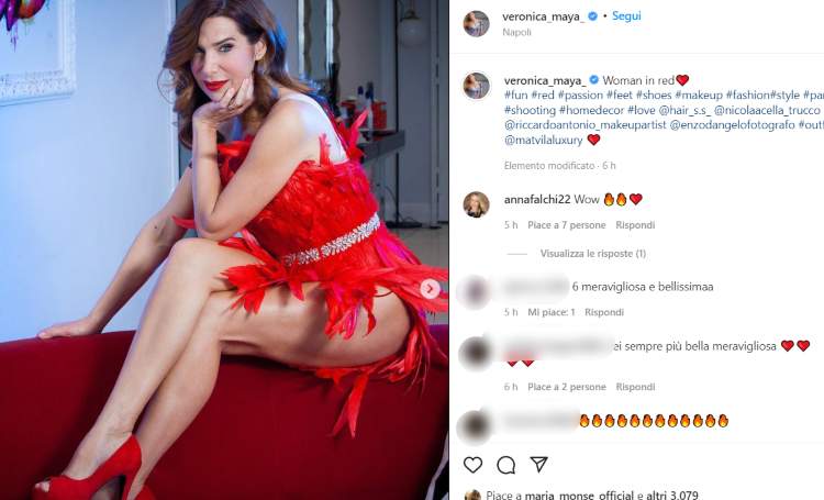 Veronica Maya splendida in rosso: la foto fa impazzire il web
