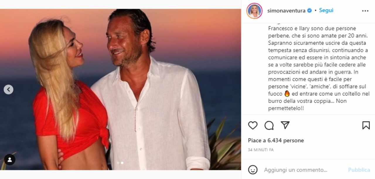 Da sottolineare, però, che Totti ha smentito seccamente le notizie circolare. Mentre, tramite stories Instagram, Ilary Blasi ha mostrato il momento della cena con figli e marito. Al di là della questione, Simona Ventura ha dato dei consigli che possono essere utili per molte coppie. Sul resto, vedremo se davvero un legame ormai ventennale come quello di Ilary Blasi e Francesco Totti è destinato ad interrompersi oppure riusciranno a superare insieme questo momento.