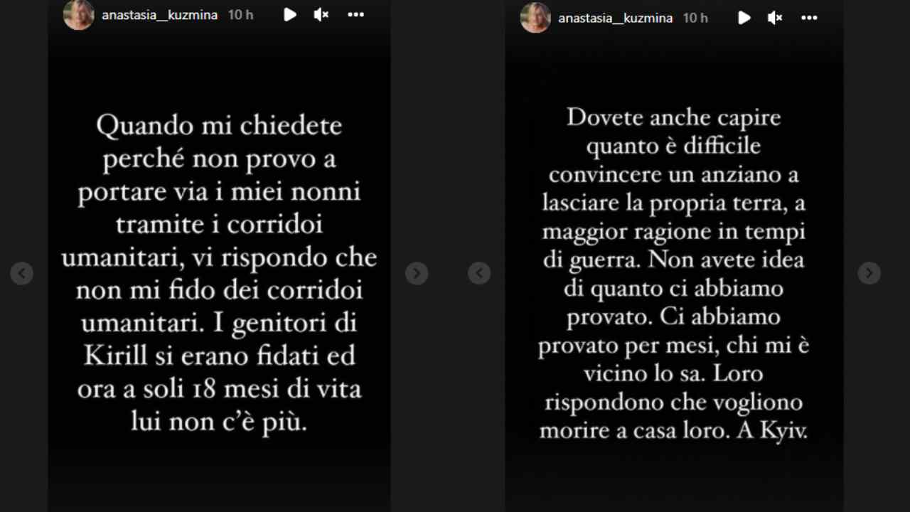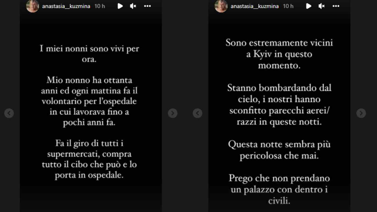 Anastasia Kuzmina continua a parlare della situazione che sta coinvolgendo l’Ucraina anche sulla sua pagina social esprimendo ancora una volta la sua forte preoccupazione per i suoi nonni che come ha detto anche in diretta da Milly Carlucci si trovano ancora proprio nei luoghi della guerra.