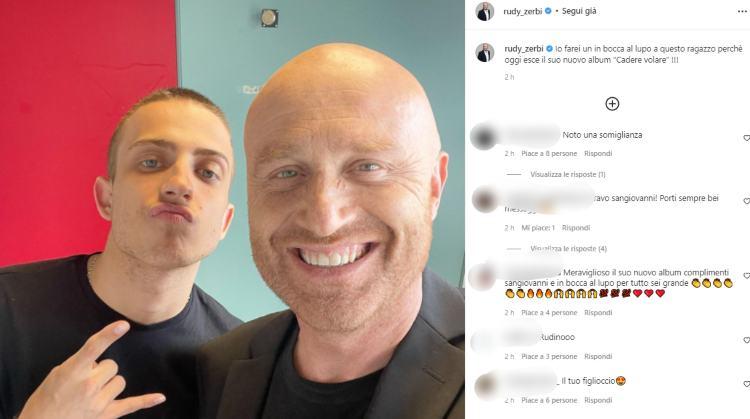 “Io farei un in bocca al lupo a questo ragazzo – ha scritto in un post Rudy – perché oggi esce il suo nuovo album Cadere Volare” queste le parole del Prof di Amici che ha condiviso uno scatto insieme a Sangio. In effetti l’8 aprile esce su tutte le piattaforme il nuovo disco dell’artista che lancerà proprio durante il serale del talent di Canale 5, sabato 9 aprile.