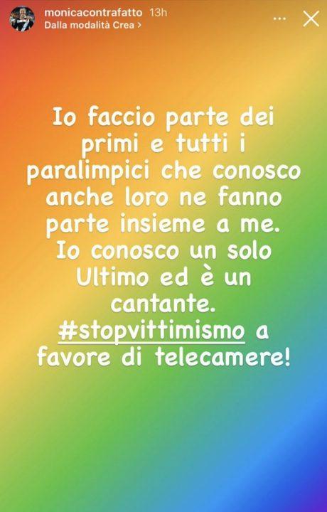 Non è la prima volta, però, che l’atleta si lascia andare a delle critiche nei confronti di Manuel. Il 13 novembre 2021, infatti, Monica Contrafatto ha criticato il suo atteggiamento verso Lulù. Ricordiamo che Manuel fu molto duro verso la Selassie. Per questo, l’atleta sottolineò che non doveva essere giustificato solo per la sua condizione. Lulù non andava trattata in quel modo e nulla c’entrava con il suo stato psico-fisico. Per questo motivo, non si doveva usare la “diversità” come scudo anche perché, scriveva, “un normo sarebbe stato già asfaltato“.