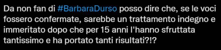 Come detto, Barbara D’Urso con i suoi programmi è riuscita a portare dei risultati davvero importantissimi alla sua emittente. Per questo motivo, per molti, la decisione è completamente fuori fuoco. Per loro, la D’Urso avrebbe dovuto avere un altro tipo di trattamento. Come possiamo intuire, la discussione si è accesa. Tra chi difendeva la D’Urso e chi invece sostiene che la presunta scelta di Mediaset sia nell’ordine delle cose. Al momento, però, si parla solo di voci e nulla è stato confermato. Staremo a vedere, dunque, se Barbara D’Urso saprà conquistarsi una nuova conferma.