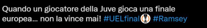 Dopo il suo errore decisivo, infatti, sono stati tanti gli utenti che hanno parlato di un errore scontato. Uno scrive: “Con l’errore di Ramsey dal dischetto la Juve riesce a perdere anche questa finale“. Altri hanno sottolineato di come l’errore lo abbia fatto definitivamente diventare della Juventus. Insomma, tanti tifosi hanno toccato nel vivo di una ferita aperta per i tifosi bianconeri. Storico, infatti, il fatto che la Juventus abbia perso tante finali.