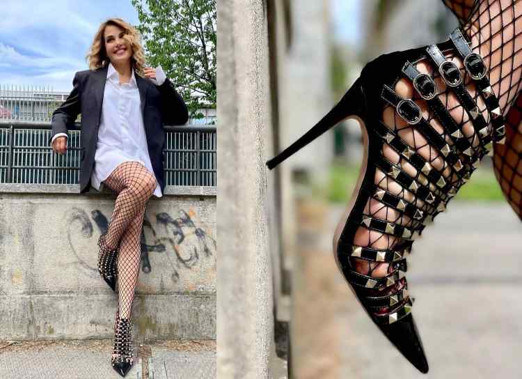 Di recente ha sfoggiato su Instagram un look davvero particolare: giacca e camicia da uomo e sotto solo calze a rete e tacco a spillo. Una mise davvero hot che non ha potuto che fare colpo, soprattutto perché per le scarpe, che sono davvero molto sexy e anche costose.