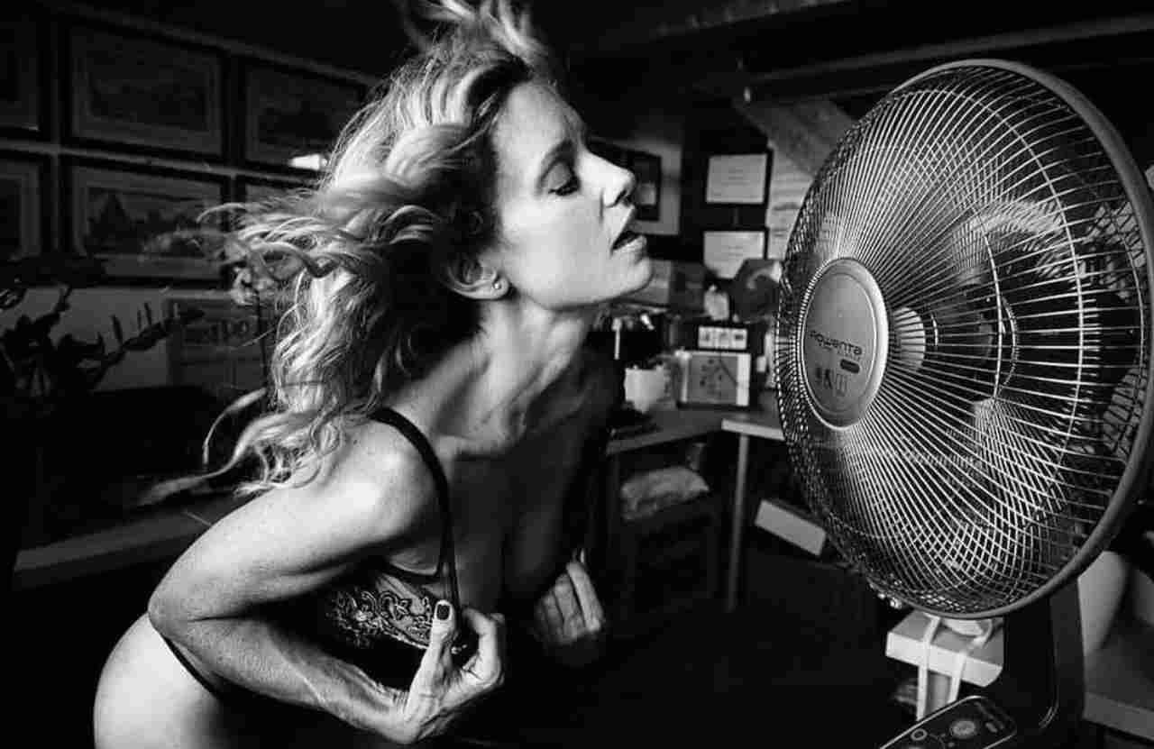 Justine, infatti, ha deciso di condividere una foto in bianco e nero dove la si vede di fronte ad un ventilatore senza vestiti, indossando solo un paio di slip ed il reggiseno in pizzo. “Pure oggi si promette bene”, ha scritto nella didascalia la Mattera, rivolgendosi alle temperature altissime degli ultimi tempi.