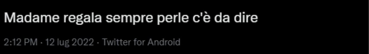 A quel punto, Madame ha coinvolto Alessia, la sua assistente, intitolando il video: “Quando cerchi di dissuadere la tua amica lella al piacere della banana“. Una frase del tutto ironica e scritta con l’intento di strappare una risata. Invece, purtroppo per la giovane cantante, l’effetto è stato opposto. Le critiche non sono arrivate dagli utenti di TikTok ma bensì da quelli di Twitter.