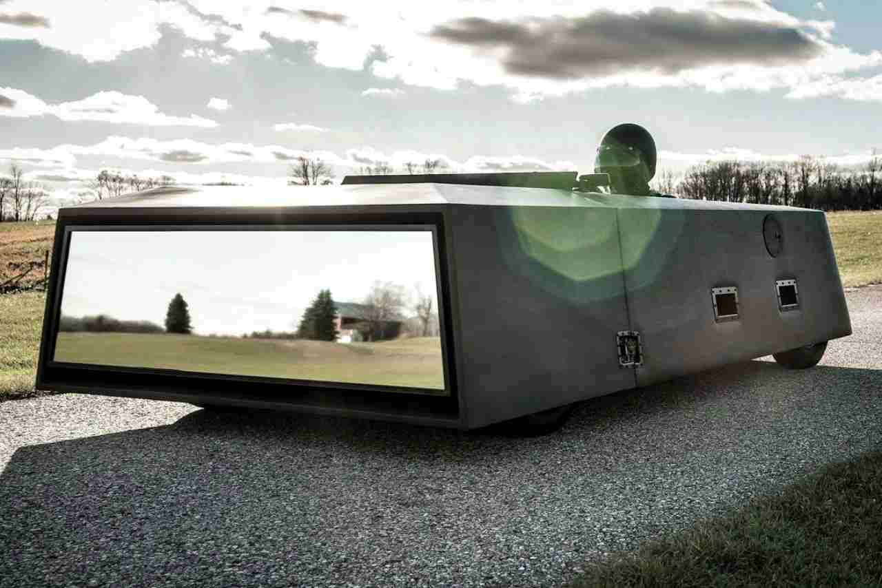 Dal lato esterno la parte frontale della Consumer è uno specchio bifacciale con led nascosti. Di notte, i LED brillano con tutti i loro 54.000 lumen, ma durante la guida diurna, lo specchio riflette gli oggetti circostanti. È questa è una delle particolarità più stravaganti che ci sono. Ha un fanale posteriore, un portatarga posteriore e specchietti laterali.