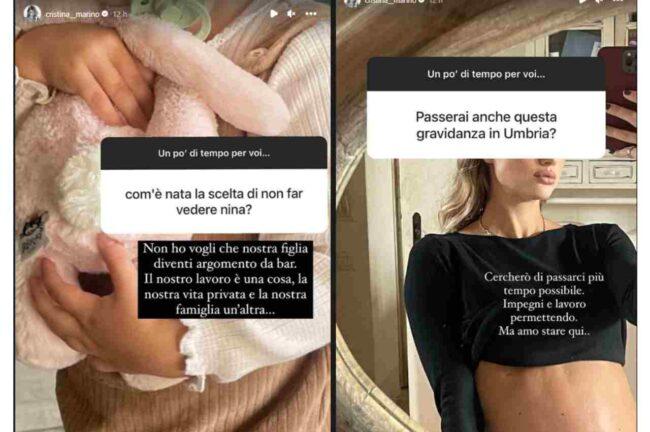 Ad oggi che la loro bambina è un po’ più grande il pensiero non è cambiato. Alla domanda di un follower che ha chiesto a Cristina le motivazioni di questa scelta la donna ha risposto: “Non voglio che nostra figlia diventi argomento da bar…“ ha chiarito. La Marino ha poi continuato affermando di voler dividere nettamente l’ambito lavorativo suo e di Luca da quello privato e familiare.